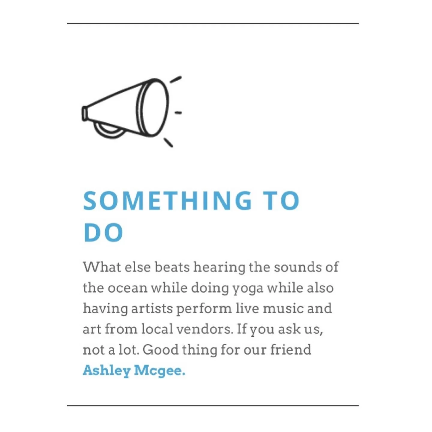 “What else beats hearing the sounds of the ocean while doing yoga while also having artists perform live music and art from local vendors. If you ask us, not a lot. Good thing for our friend Ashley McGee.”
