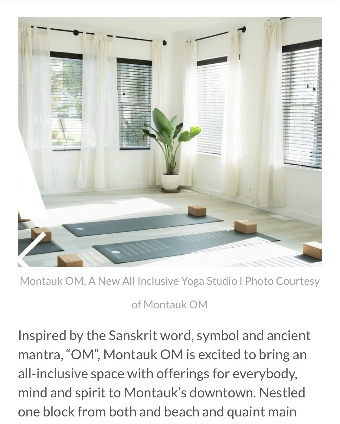 “Summer Sunday Yoga series in Montauk feeds your soul with yoga, music, and art…McGee’s yoga class is an enriching experience.”
